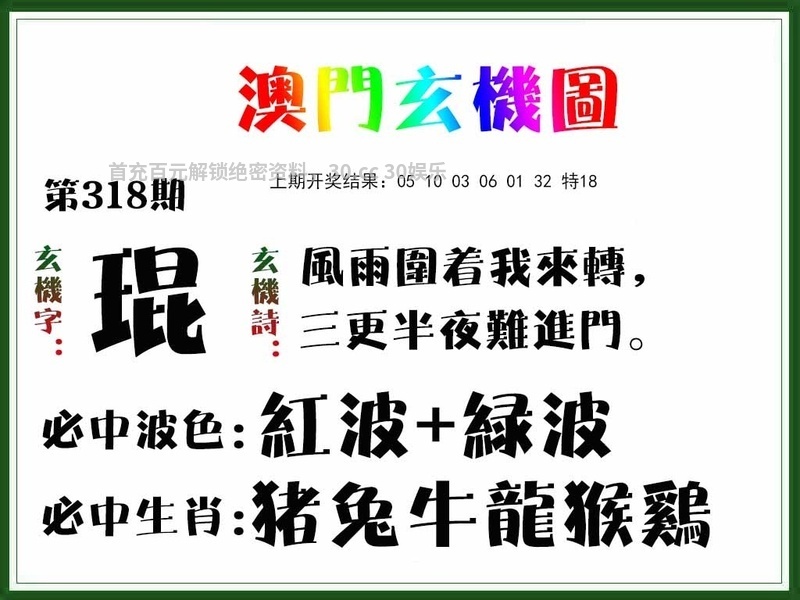 317期天【兔马龙猪】地【蛇虎狗】开:鼠18准